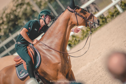 Beryl des Prés et Antoine sont arrivés à Oliva Nova vendredi soir. Après deux jours d'acclimatation aux fortes chaleurs, Beryl a été accepté lors de la visite vétérinaire ce dimanche. Tous les voyants sont au vert pour entamer la compétition. La journée s'est poursuivie par la célèbre parade des nations. L'ambiance au sein de l'équipe de France est formidable, preuve à l'appuie ci-dessous !